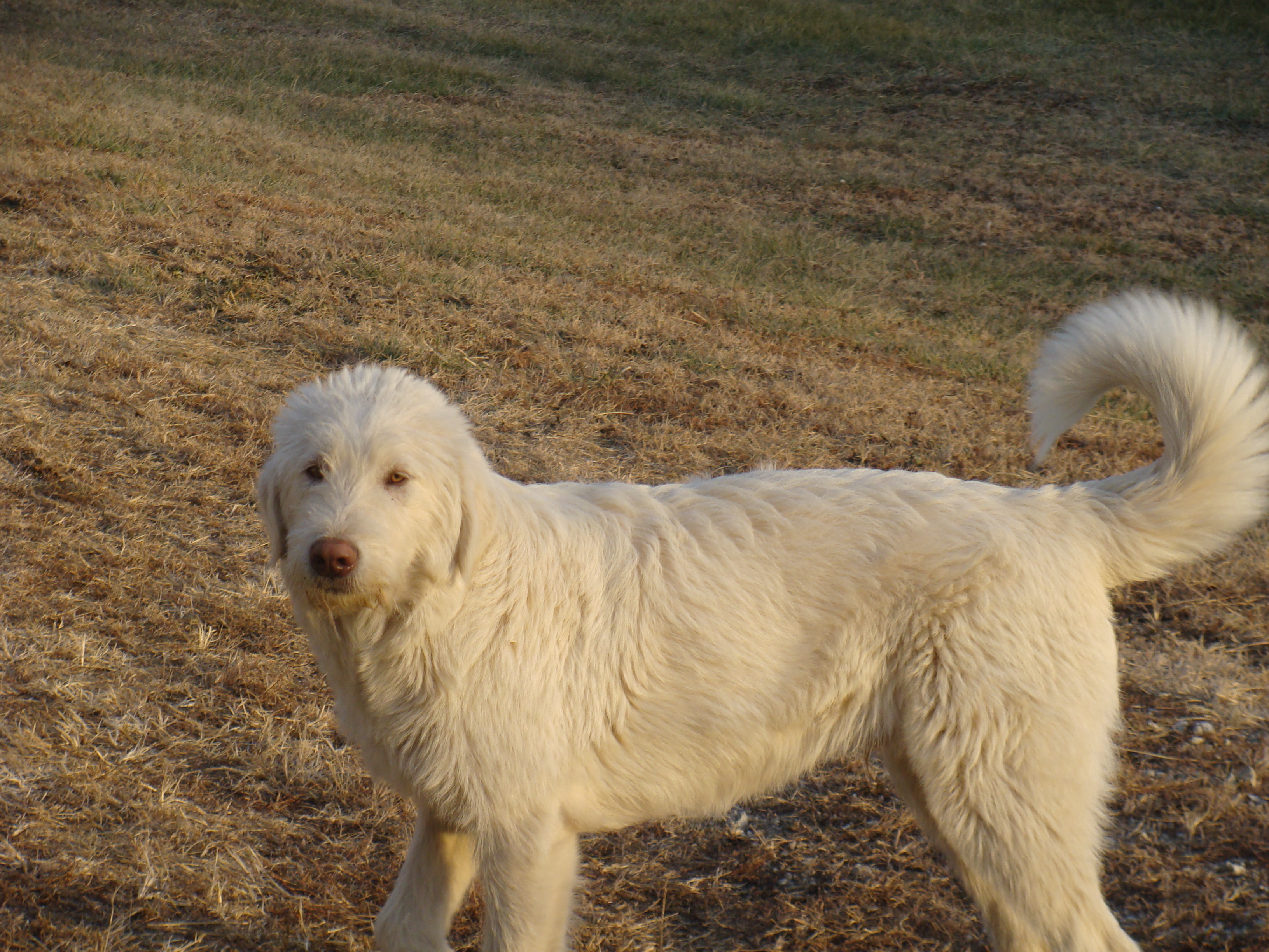 Ghost was imported from Hungary as a puppy by a family in NC that loved him very much. As with many Komondor males, Ghost grew in no time from a small sweet puppy to a 150 lb. out of control puppy. Ghost’s owner recently placed him on a farm with an alpaca breeder and Komondor owner. She was so afraid of him, she gave him back to the owner in just a few days.