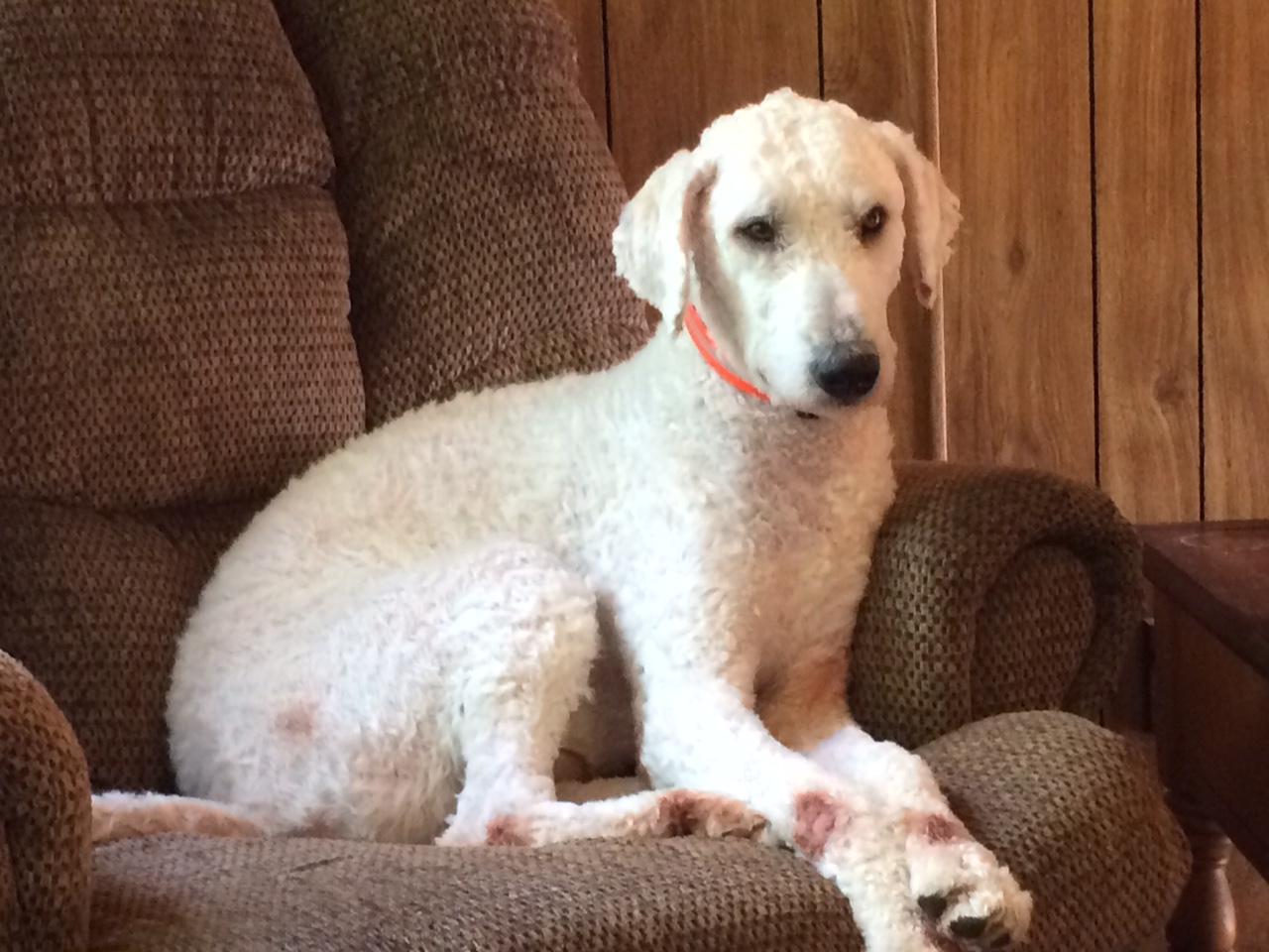 Fortunately, for Ghost we found an experienced Komondor owner in Texas willing to adopt him, in spite of the fact that he needed a lot of training and socialization, not to mention the fact that he is much larger than she is. A month ago, his new owner was willing to drive to NC to get him and bring him to her Komondor home in Texas. He is attending obedience classes with her and is starting to learn basic commands and he is learning how to be a canine good citizen. He has quite a way to go, but I am told he is making great progress. His new owner, who dearly loves the breed, is determined to make it work and I know she will. I am very grateful to her for taking in a sizable, but lovable project. — Ruth